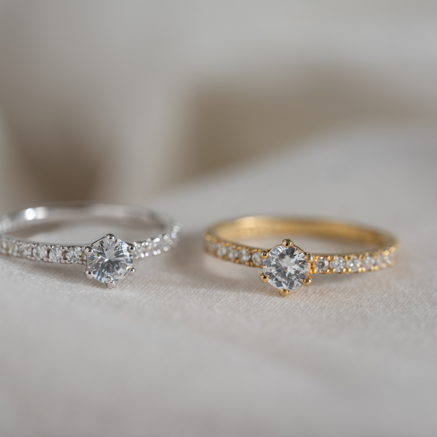 メインダイヤモンドは大きめの6本爪でセッティング。