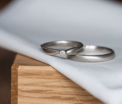 ※フルエタニティリング、デザインがリング一周に施されたリング、ピンクゴールド、±2 号以上のお直し、レーザー刻印が打刻されたリング等は不可、または、有料の場合がございます。