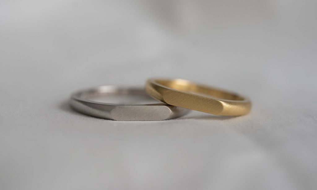 角を出したり丸みを出したり、同じデザインでも印象が異なり個性があるご結婚指輪。