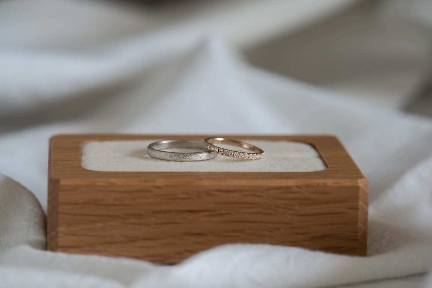 異なる質感が調和するデザインは、まるでふたりの個性がひとつになっていくよう。